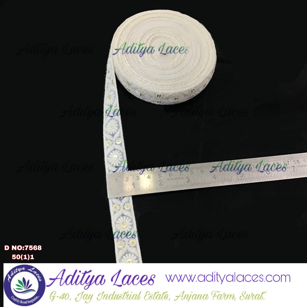 Dyable lace in white and off-white, designed for easy coloring into any shade, ideal for sarees, dupattas, dresses, and designer wear, offering smooth dye absorption, fine detailing, and flexibility for custom styling in a convenient 9-meter roll.