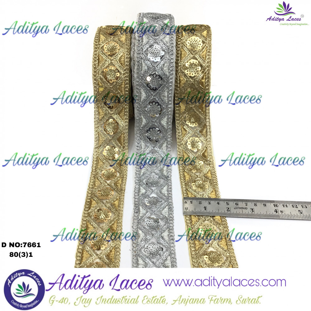 Tissue 6mm sequin lace is a luxurious and high-shine trim popularly used in sarees, dupattas, lehengas, and festive garments. Crafted on a shimmering tissue fabric base, this lace is beautifully enhanced with 6mm sequins, intricate embroidery work, and detailed handwork with mirror accents, giving it a rich and elegant festive appeal. The combination of glossy tissue fabric and sparkling sequin–mirror work makes it ideal for premium ethnic and designer outfits.
