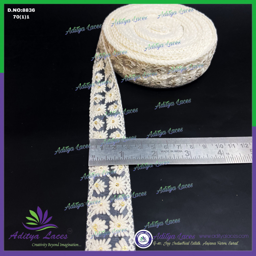 Dyable Lace is a versatile and customizable lace widely used in sarees, dupattas, dress materials, and boutique designer wear. Available in white and off-white, this lace is specially designed to be easily dyed into any color, making it perfect for matching fabrics, themes, and custom outfit requirements.
