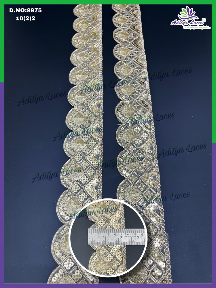 Available in standard 9-meter rolls, this lace is perfect for borders, dupatta edges, blouse sleeves, garment panels, and bridal or party-wear finishing. Its lightweight yet glamorous look makes it a favorite choice for boutiques, designers, and manufacturers seeking a high-value decorative trim.