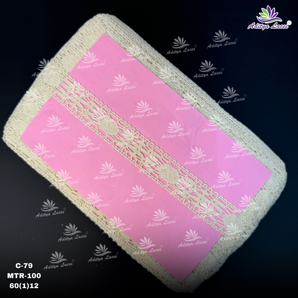Available in long 50 to 100 meter rolls, Crosia laces are highly preferred by boutiques, garment manufacturers, and designers for bulk usage and consistent quality. Their timeless design and smooth finish make them perfect for giving garments a subtle yet premium handcrafted appeal. Features: