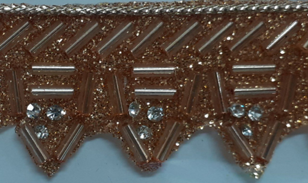 Elegant cutdana lace made with premium beads and jarkan stones, designed as a hotfix embellishment for sarees and festive wear. Available in a 9-meter roll, it adds a sparkling and luxurious finish to any garment.