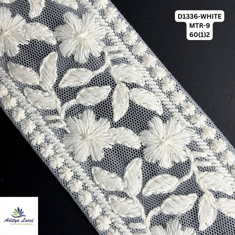 Specially made to be easily dyed into any color, it allows complete customization to match any outfit, wedding theme, or designer requirement. The hand-embellished detailing ensures a luxurious finish, while the high-quality base material absorbs dye smoothly and evenly. Available in a 9-meter roll, it is ideal for boutiques, fashion designers, and garment manufacturers looking to add a premium handcrafted touch. Features