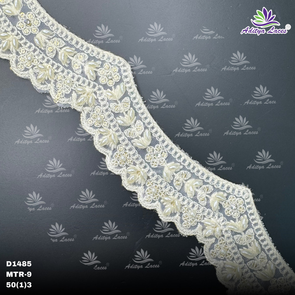 Specially made to be easily dyed into any color, it allows complete customization to match any outfit, wedding theme, or designer requirement. The hand-embellished detailing ensures a luxurious finish, while the high-quality base material absorbs dye smoothly and evenly. Available in a 9-meter roll, it is ideal for boutiques, fashion designers, and garment manufacturers looking to add a premium handcrafted touch. Features