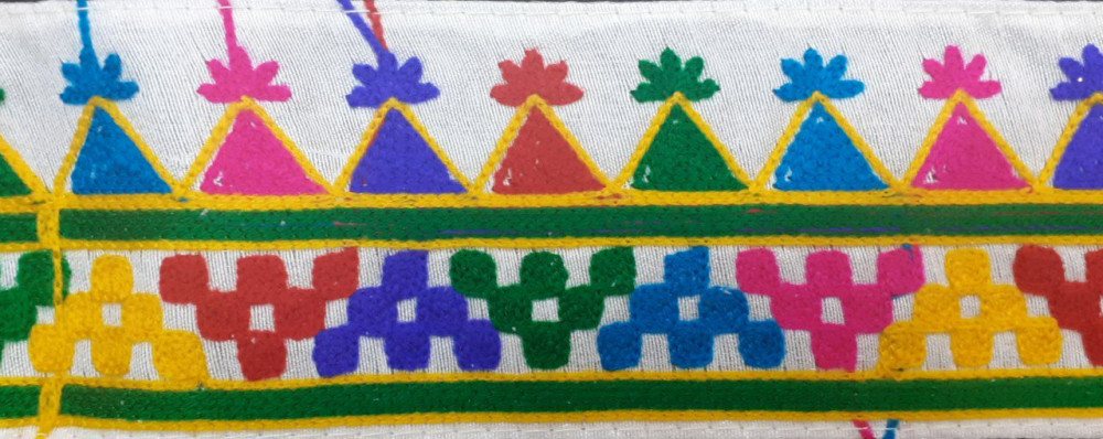 Colorful Gamthi lace crafted with embroidery, handwork, and mirror work—perfect for enhancing Garba dresses, chaniya cholis, and festive outfits with a vibrant traditional touch