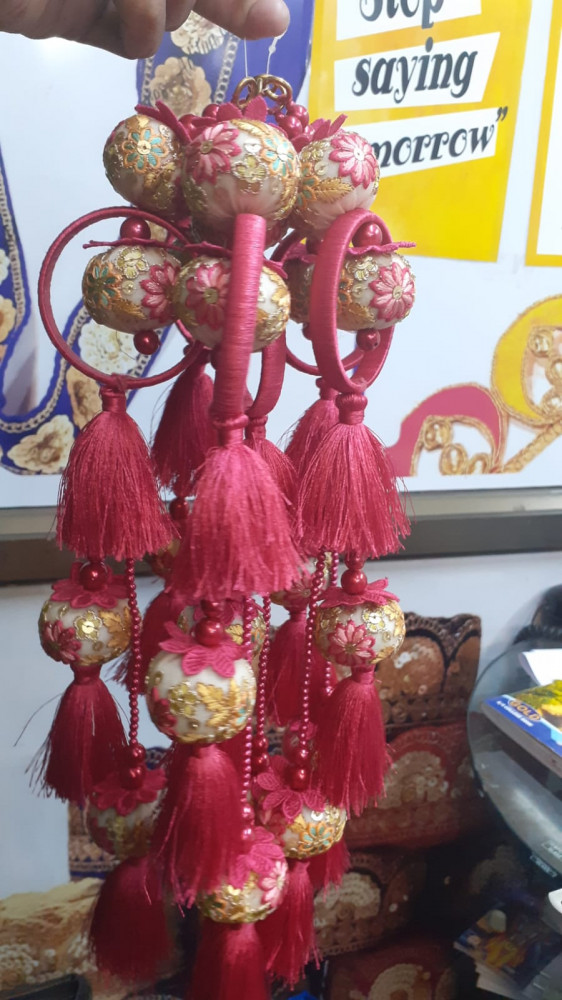 Latkans are beautiful decorative tassels widely used to enhance the charm of sarees, lehengas, dupattas, blouses, chaniya cholis, potli bags, and festive garments. Crafted in multiple attractive varieties, these latkans are made using fine threads, beads, pearls (motis), stones, jarkan, mirror work, and intricate handwork, giving each piece a unique and elegant appearance.