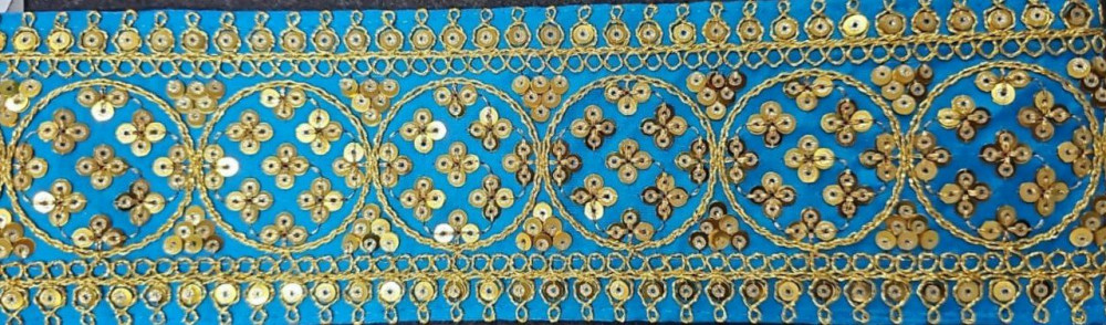 Add royal elegance with this gold coin lace, featuring intricate metallic coin motifs on a fine base. Ideal for sarees, lehengas, blouses, and festive decorations.
