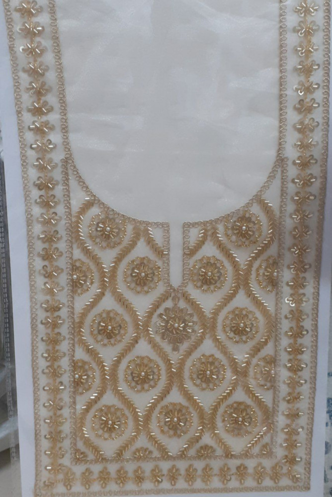 Ready-made embroidered neck designs with added handwork, perfect for dresses, kurtas, and salwar suits. Easy to stitch and available in various shapes, they instantly add richness and a premium finish to any outfit.