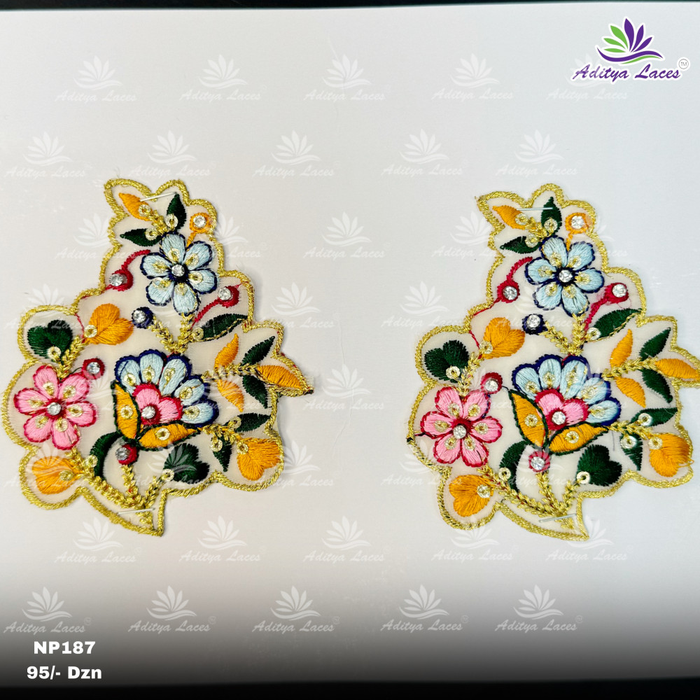 Available in a variety of attractive shapes such as square, round, and triangle, each butta adds a unique design element to the fabric. They are perfect for highlighting necklines, sleeves, skirt panels, yokes, and dupatta borders. Their intricate workmanship and sparkling mirror details make them ideal for bridal wear, Garba outfits, and festive fashion.