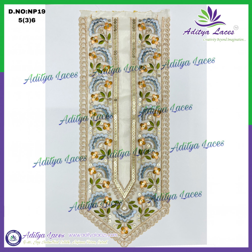 Ready-made neck designs are widely used in dresses, kurtas, and salwar suits to add instant elegance and richness to any outfit. Crafted with beautiful embroidery work, fine handwork, and decorative detailing, these neck pieces enhance the front neckline of garments without the need for heavy stitching or design work. Each neck pattern is carefully designed to match traditional, festive, and daily-wear styles, making it easy for designers and tailors to create premium-looking outfits in less time.