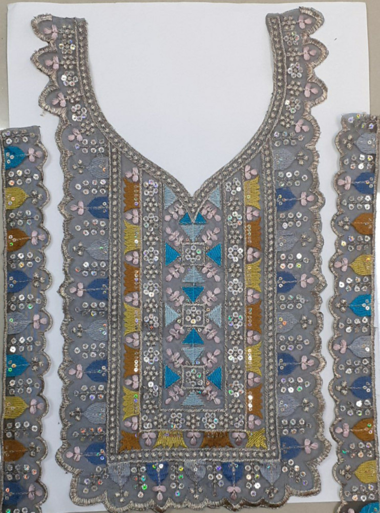 Ready-made neck designs are widely used in dresses, kurtas, and salwar suits to add instant elegance and richness to any outfit. Crafted with beautiful embroidery work, fine handwork, and decorative detailing, these neck pieces enhance the front neckline of garments without the need for heavy stitching or design work. Each neck pattern is carefully designed to match traditional, festive, and daily-wear styles, making it easy for designers and tailors to create premium-looking outfits in less time.Available in different shapes and sizes based on the neckline design, these ready necks are perfect for elevating simple fabrics into stylish, finished garments. Their detailed craftsmanship gives every dress a refined and fashionable appearance.