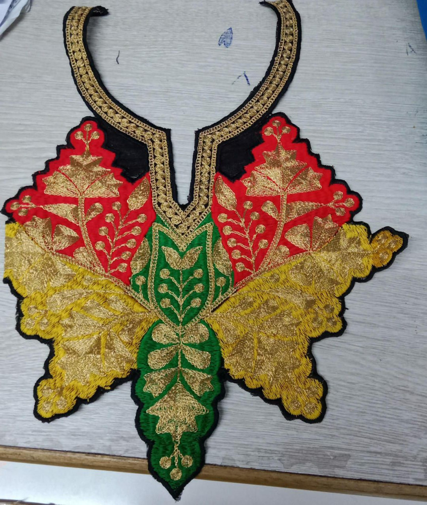 Ready-made embroidered neck designs with added handwork, perfect for dresses, kurtas, and salwar suits. Easy to stitch and available in various shapes, they instantly add richness and a premium finish to any outfit.