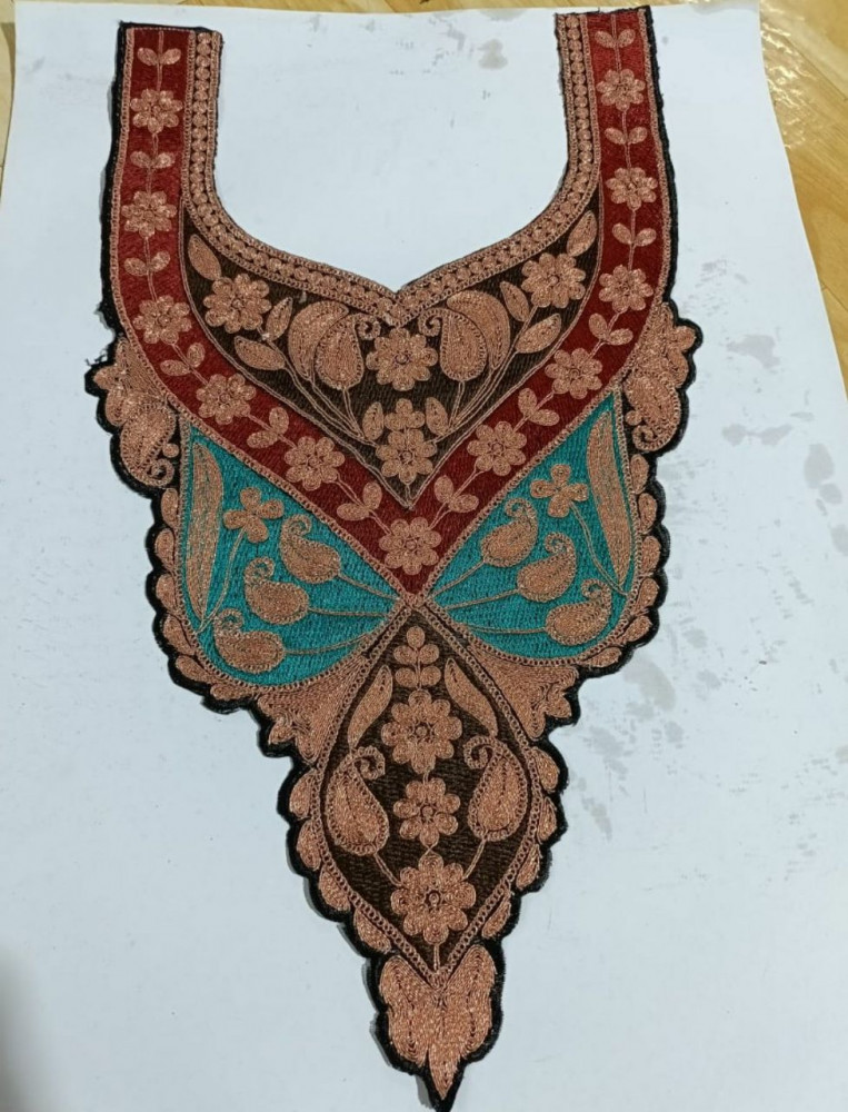 Ready-made embroidered neck designs with added handwork, perfect for dresses, kurtas, and salwar suits. Easy to stitch and available in various shapes, they instantly add richness and a premium finish to any outfit.