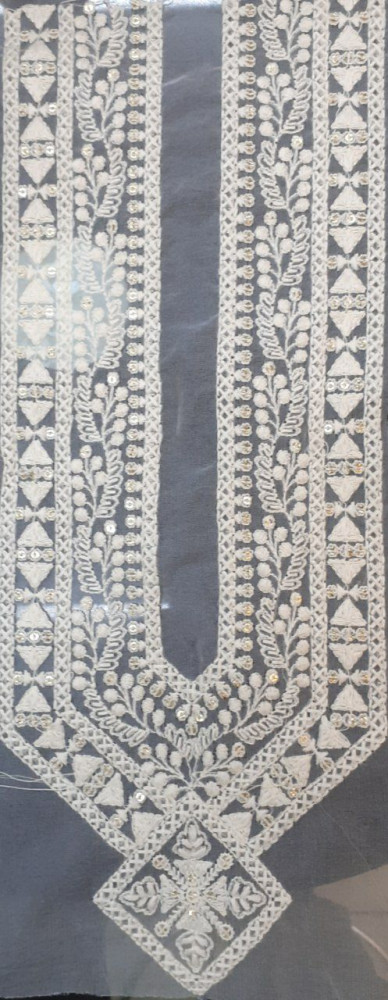 Ready-made embroidered neck designs with added handwork, perfect for dresses, kurtas, and salwar suits. Easy to stitch and available in various shapes, they instantly add richness and a premium finish to any outfit.