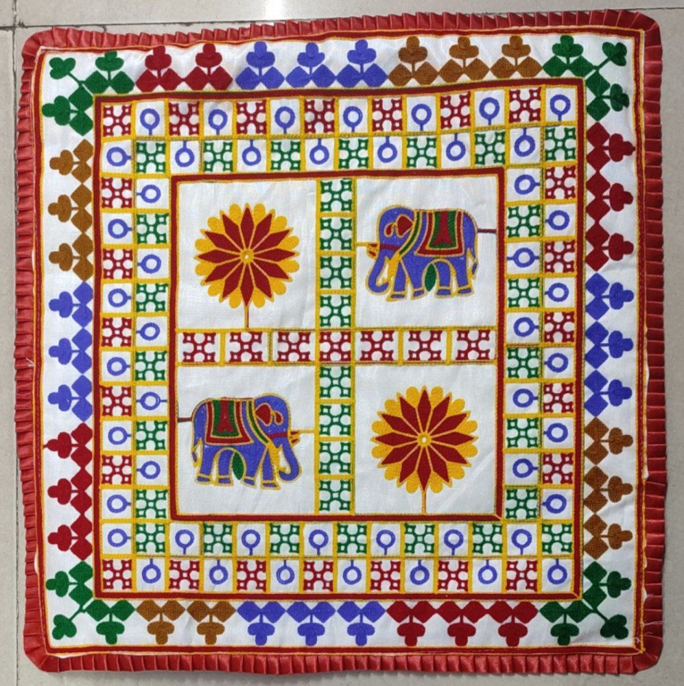 Riwaaz products are traditional handcrafted items widely used in Indian weddings, religious ceremonies, and cultural rituals. These decorative pieces are beautifully made with fine embroidery, detailed handwork, and vibrant traditional designs. Commonly used as asana for God idols, baby footprint mats, and other ritual placements, Riwaaz items play an important role in adding purity, grace, and cultural richness to special occasions.