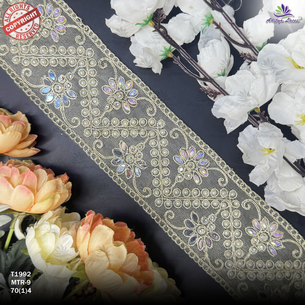 This premium Tissue Handwork Lace is crafted with delicate 3 to 5 mm sequence and intricate jarkan detailing, adding a sophisticated and artisanal touch to sari borders, dupattas, and ethnic wear. The hand-stitched design creates a luxurious finish, making it perfect for weddings, festive occasions, and designer outfits.Available in multiple colors, it allows effortless pairing with various fabrics and styles. Each roll comes in a convenient 9-meter length, ideal for designers, boutiques, and tailoring units. Made from high-quality tissue material, it is lightweight, durable, and easy to work with while maintaining its elegance and shape over time.