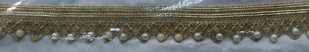 This elegant Moti Lace is beautifully crafted with fine metallic threads and evenly placed pearl (moti) embellishments, creating a rich and graceful border. The subtle shine of the pearls combined with the soft texture of the lace adds a luxurious finish to any outfit or accessory. Perfect for enhancing traditional as well as contemporary designs, this lace brings sophistication and charm to every creation.